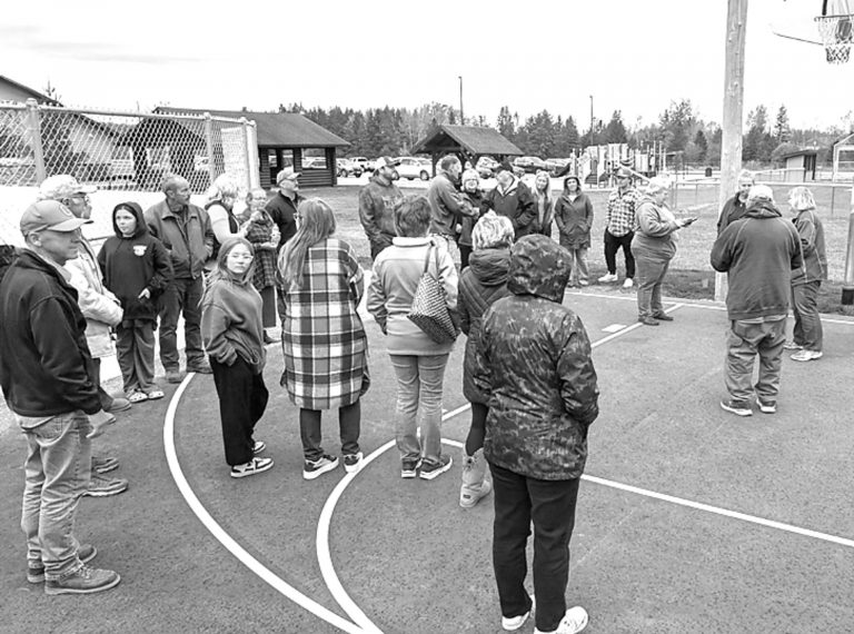 Rain threatened but stayed away for the Oct. 9 dedication of the new pickle ball court, basketball court, and ice rink at the Cook Community Center. About 40 people gathered around the basketball hoop at 6 p.m. as the Friends of the Parks celebrated the completion of a project begun years ago.